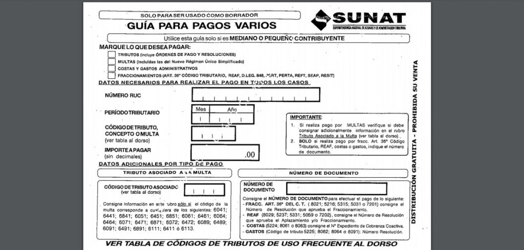 Puedes usar esta Guía de Pagos Varios completamente Gratis, solo debes llenar los datos y luego puedes descargar el documento en PDF o imprimirlo.